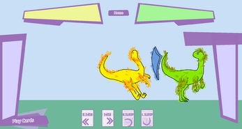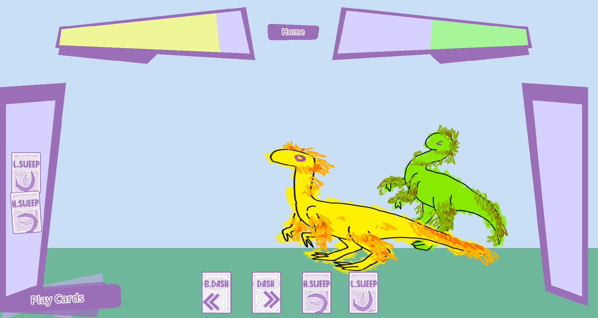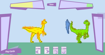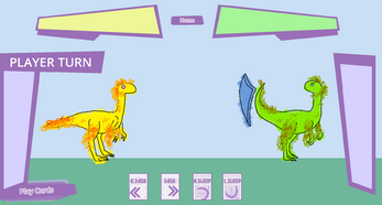 Dino Deck Duel breaks down situations in fighting games (e.g. "the opponent is high blocking"), and presents them in a turn-based format through discrete levels.
