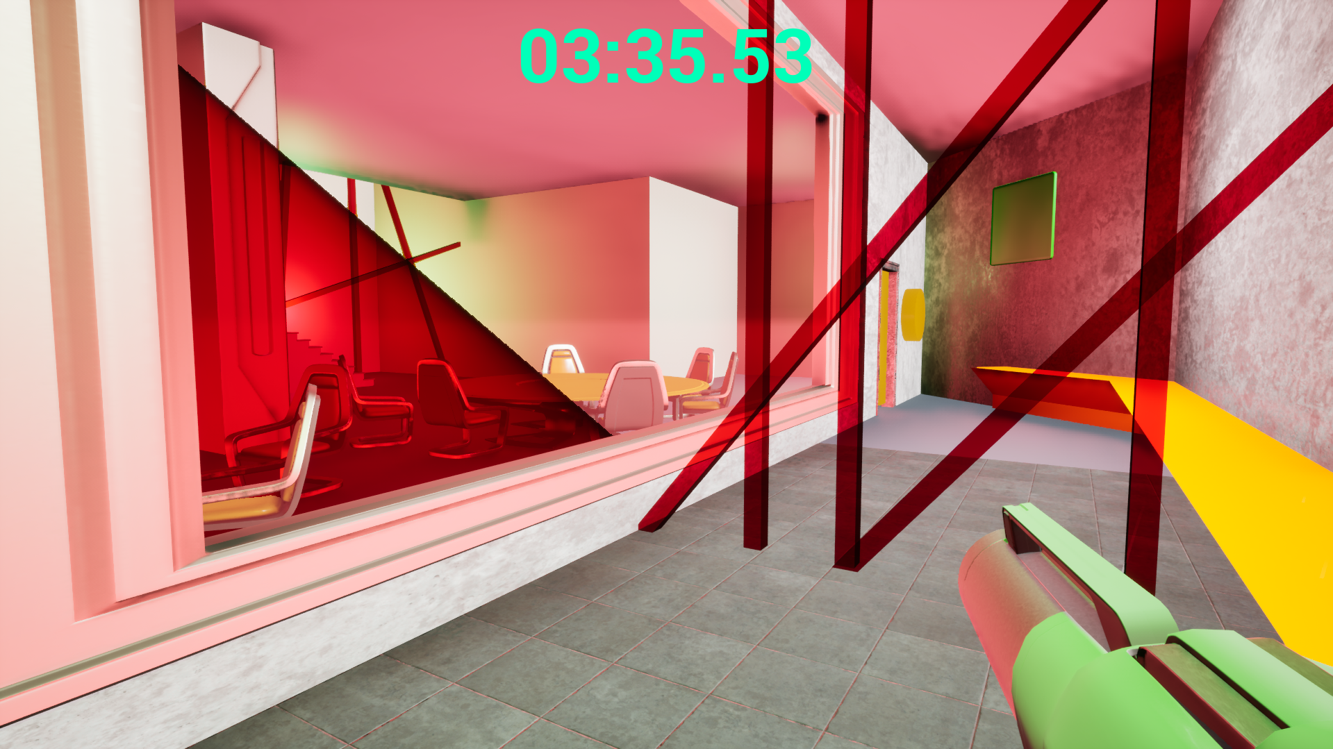 The player has broken into an abandoned lab facility to steal the experimental Reality Gun, a weapon that slows time when fired and warps the user to certain targets. The facility is in low security mode in which the player learns to manoeuvre around the cameras and lasers, until the testing room where the facility goes on lockdown, giving the player only a few minutes to find a way to escape up the stairs.